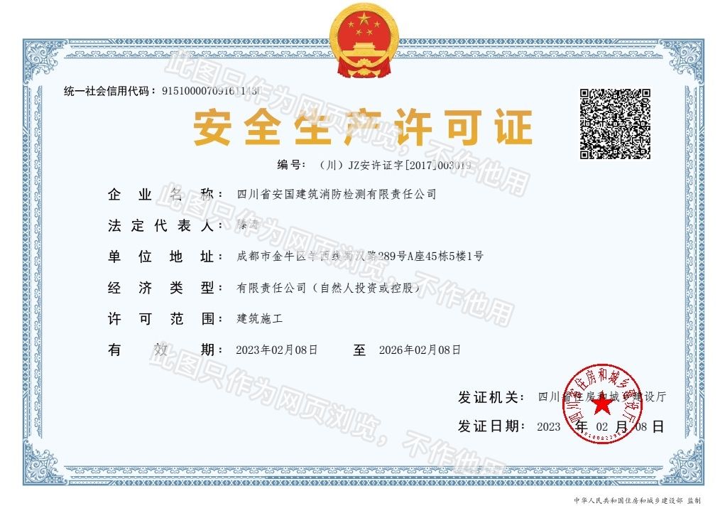四川省安國建筑消防檢測有限責(zé)任公司,成立于1998年,經(jīng)四川省公安消防總隊(duì)批準(zhǔn),工商部門注冊的獨(dú)立法人單位。